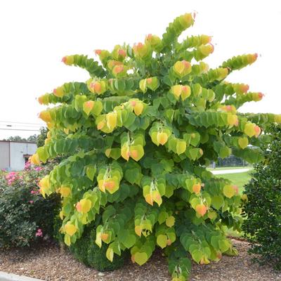 - Heart-shaped deep apricot-coloured leaves