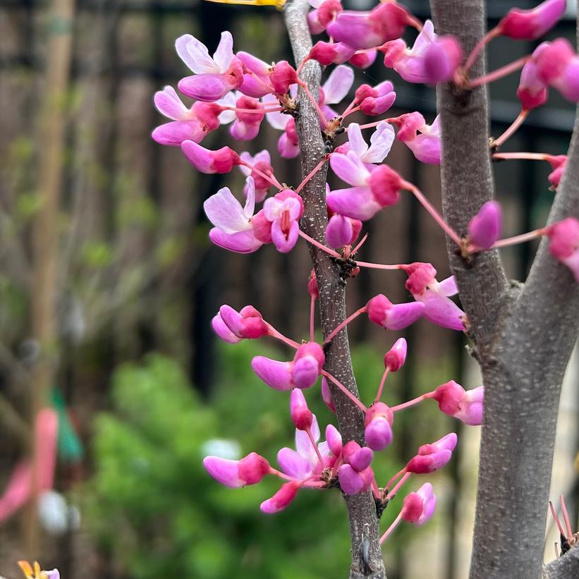 - Rosy-lavender, sweet pea-like flowers bloom profusely on bare branches and even on mature trunks