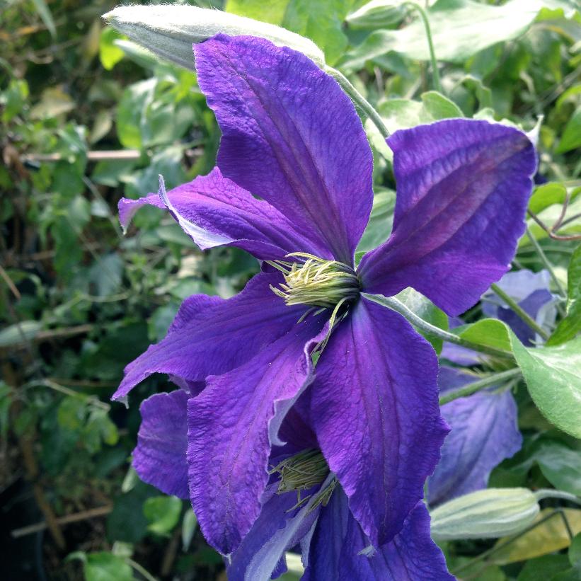 Clematis grow best in a rich, moist to average, well-drained soil, in full sun. Protection from intense afternoon sun is beneficial. Large flowering bi-colours, reds and blues, may fade quickly if planted in direct sun. Roots need a cool environment to thrive; it is recommended to plant a ground cover or shallow-rooted perennial to shade the roots; mulching is suggested. Plant the crown 3-5 cm below the soil's surface. Clematis are slow to establish and initially need to be tied to a trellis or fence to begin climbing.