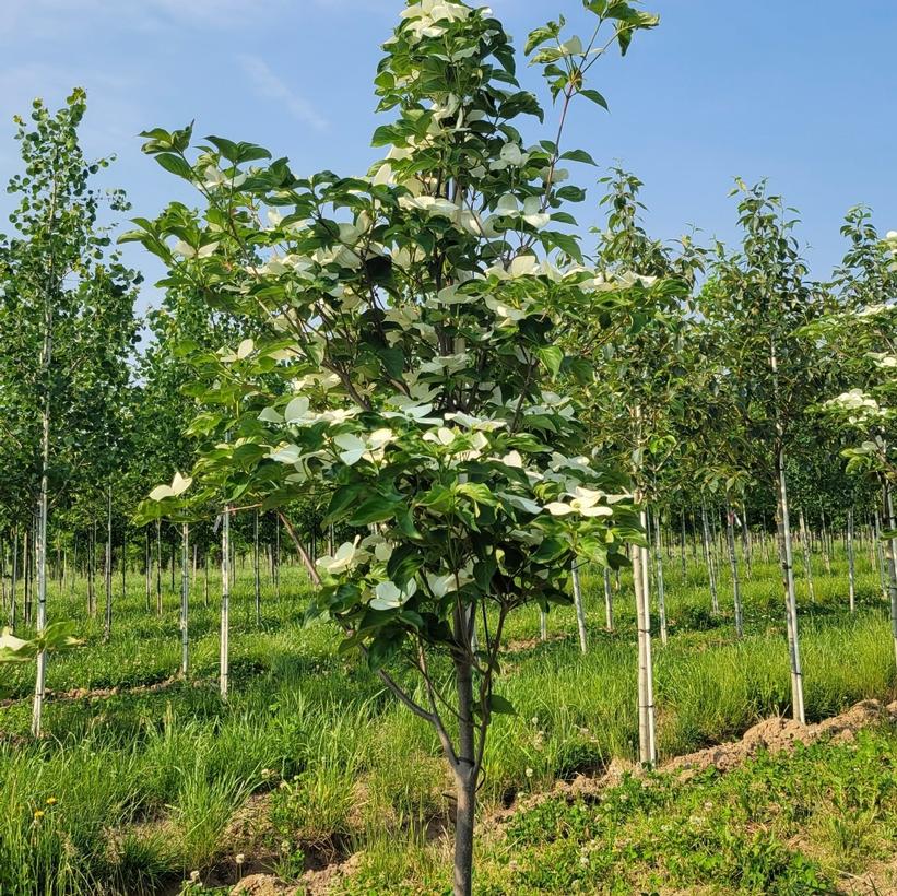 The showy flowers seen on Cornus kousa cultivars are actually bracts surrounding the smaller inconspicuous flower in the centre.