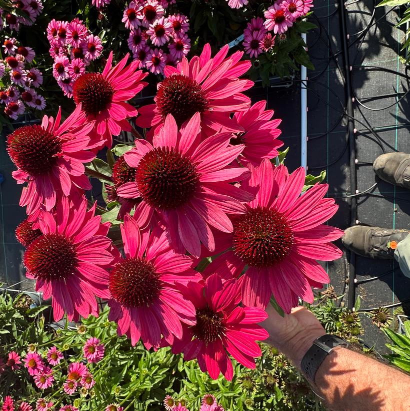 Echinacea thrives in an average to moist, well-drained soil, in full sun to partial shade. They are drought tolerant once established and adaptable to heat and poor soils. Taller cultivars may grow leggy and require staking if grown in dense shade. Regular deadheading is recommended to improve appearance, but not necessary to increase bloom time. Direct sun exposure helps develop proper flower pigmentation. Pay special attention to plant depth: crown must be at or slightly above soil level.