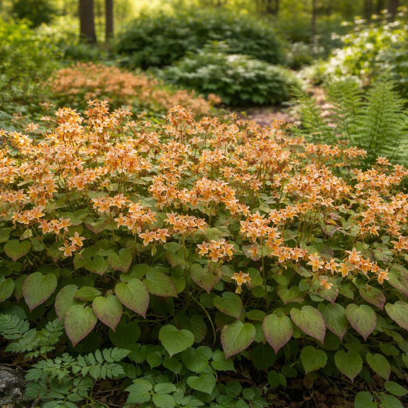 Grows best in a average to moist, well-drained soil, in partial shade. Epimedium spread by rhizomes and are slow to establish. Once established, they make a tidy ground cover for dry, shady locations. Pruning in late winter will encourage fresh leaves and profuse flowers.