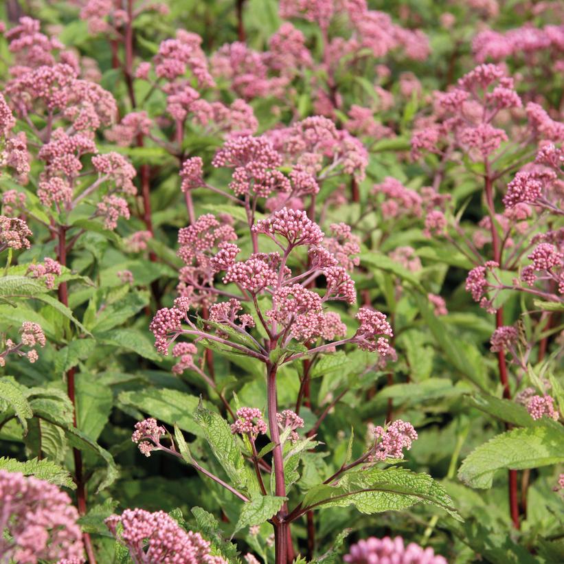 Often late to emerge in the spring, they grow best in an average, medium to wet, well-drained soil, in full sun to partial shade. Very adaptable to most conditions and become drought tolerant once established. In full sun and extended dry periods leaves may scorch. Pinch back stems in June to encourage a more compact, bushy plant. If planted in deep shade, eupatorium will become leggy and require staking. The overall height and width of eupatorium can vary depending on its growing conditions. Spent flowers can be left for winter interest and food for birds.
