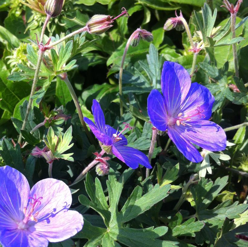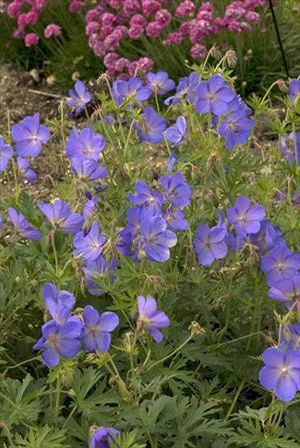 A result of a hybrid cross between Geranium himalayense and Geranium pratense.