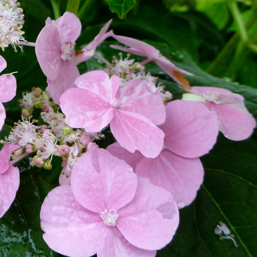 Hydrangea serrata: Blooms on old wood, do not prune.