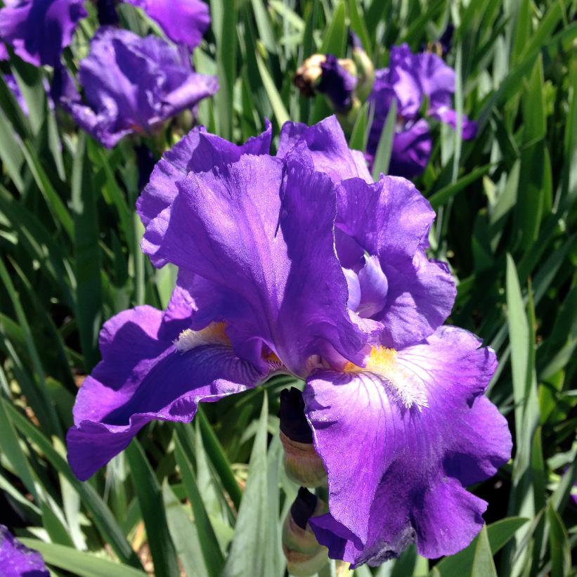 Iris germanica grow best in a moist to average, well-drained soil, in full sun. They dislike wet conditions and excess winter moisture. Ensure that the rhizome is slightly about soil level when planting. Once the flowers are spent, remove stalks to keep a tidy looking plant. If plants are overcrowded, flowers will not be as prolific.