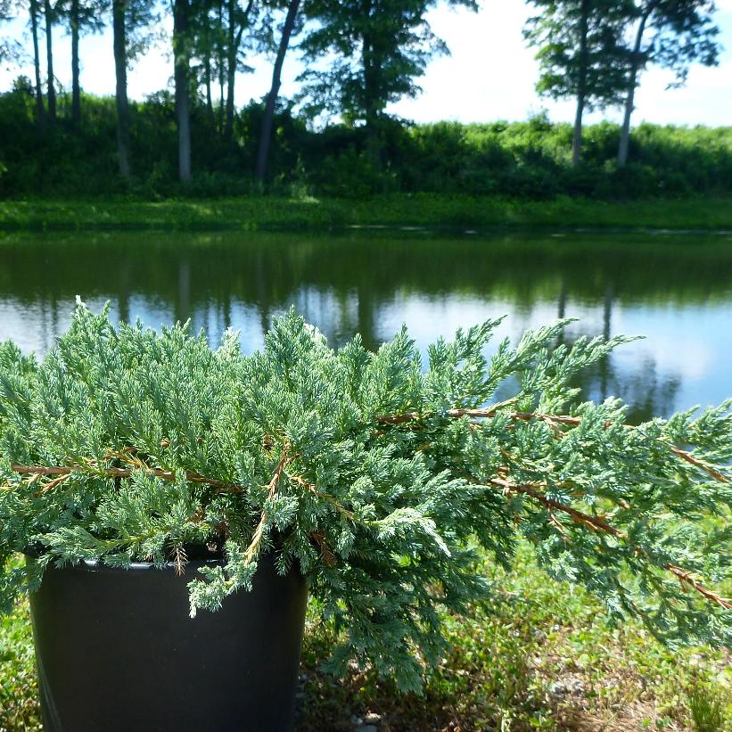 Once established, junipers require little water and tolerate a wide variety of soil conditions. These spreading junipers present a low maintenance option to prevent erosion on hillsides. The bright blue foliage makes this cultivar a great choice where winter interest is desired.