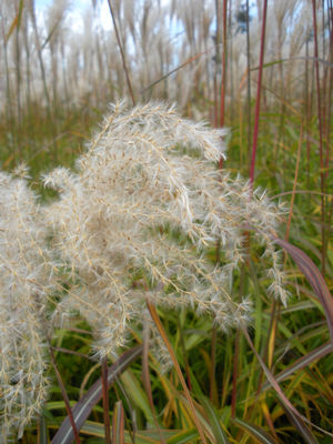 Warning: Although individual Miscanthus cultivars are reputedly sterile, two cultivars can sometimes cross-pollinate, and produce viable seed, becoming invasive in several states, and in Southern Ontario. (pers obs.)