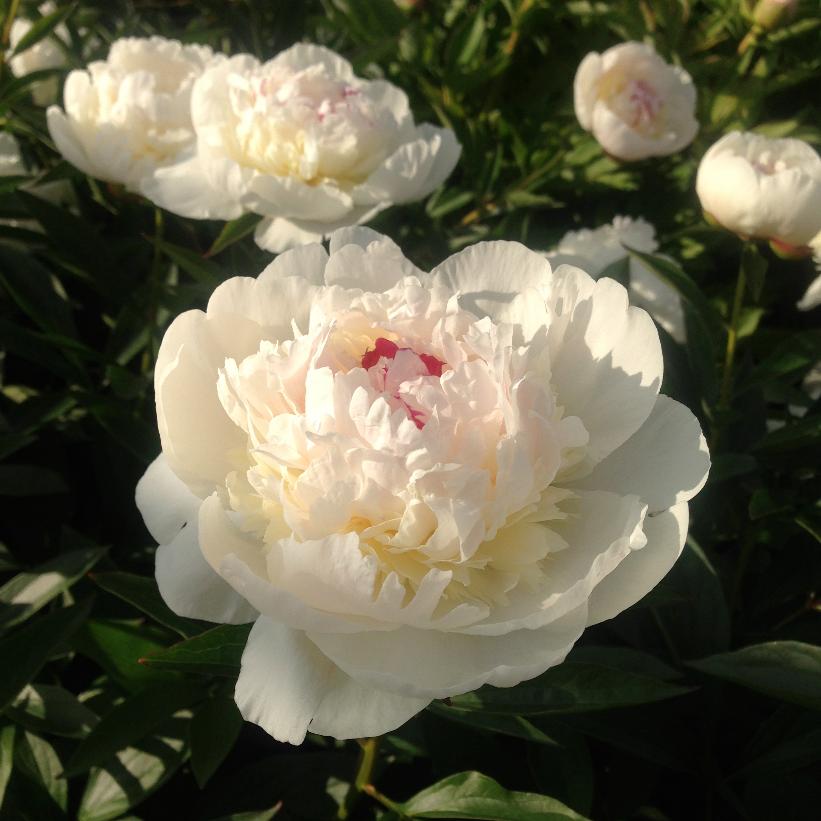 • Semi-double:  Like single peonies, but with 2-3 whorls of broad overlapping petals.