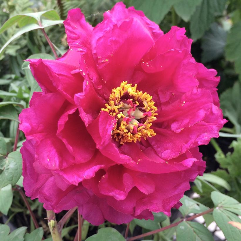 Tree peonies have a woody stem and the branches do not die back to the ground in the winter. Do not prune except to remove spent flowers. Plant in full sun or partial shade in a well-drained, evenly moist soil. They can be drought tolerant, once established.