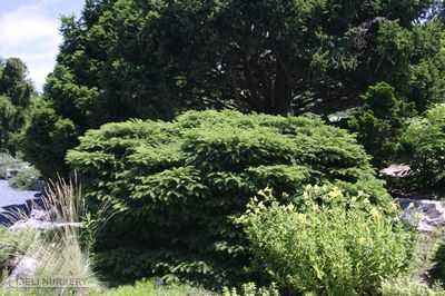 Mature plants have a depression or “nest” in the centre of the flattened top, hence the common name of Bird’s Nest spruce.