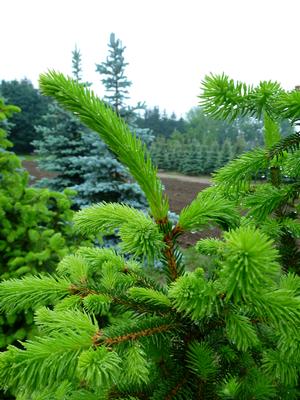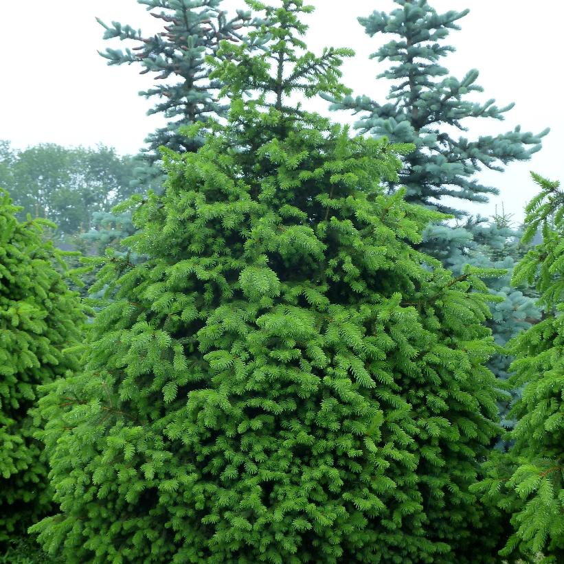 This stubbier spruce is a good choice when planting in a confined area. They can also be planted in groups to make a privacy wall.