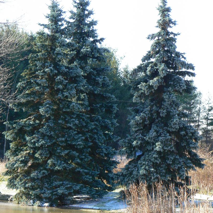 With its persistent showy blue colour all summer, and maturing to grey-blue for winter, this narrow spruce is an excellent alternative to the Colorado blue spruce. An evergreen for large lawns, parks, or woodland areas.