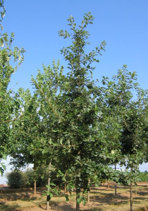 The small-sized acorns on this cultivar make it a great street tree, leaving less litter than other cultivars. The leaves are resistant to mildew and anthracnose.