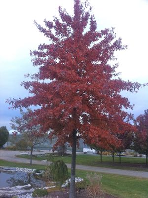A popular shade tree with a strong central leader and good fall colour. This oak is great for landscapes, parks or streets.