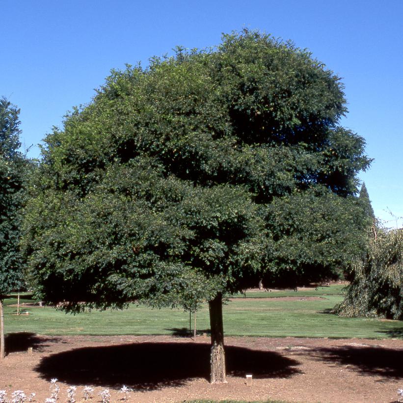 This tree can be pruned to a desired shape or size, giving it a formal appearance. This cultivar rarely flowers, which means less litter.