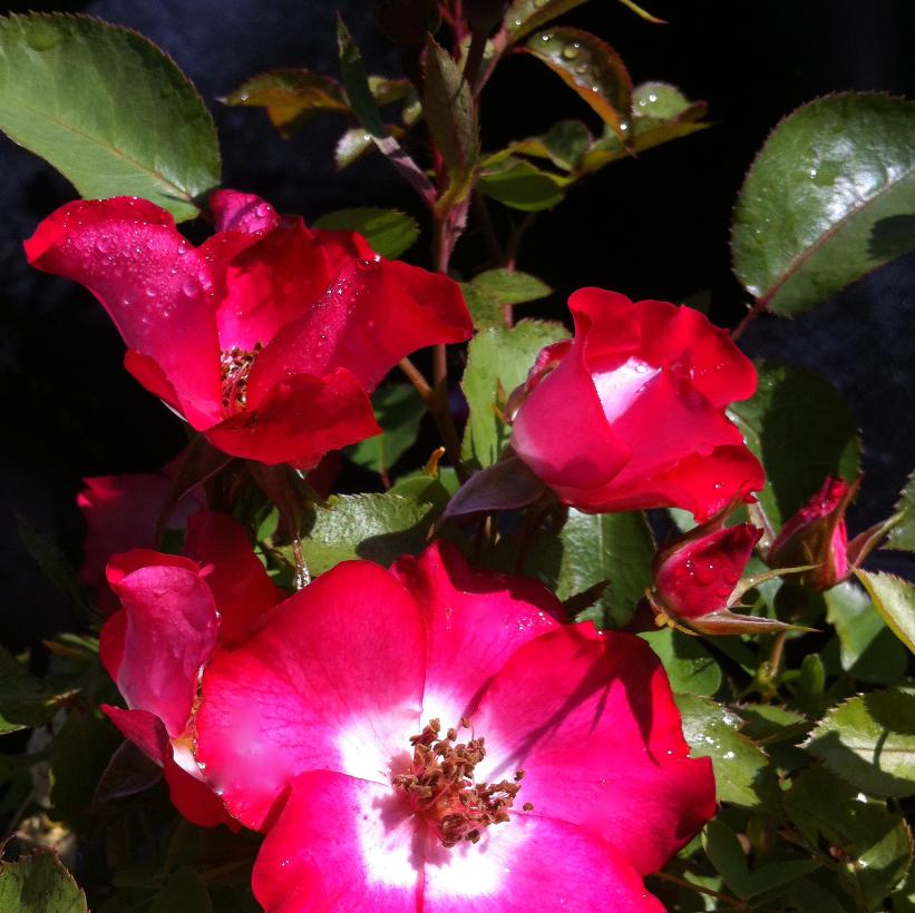 Roses grow best in a moist, slightly acidic, well-drained soil, in full sun. Deadheading will promote further flowering and it is best to avoid watering or wetting the leaves when they are exposed to the sun.