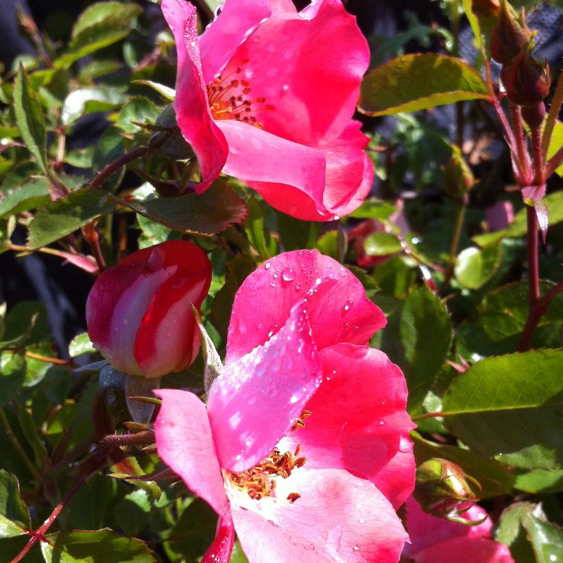 Roses grow best in a moist, slightly acidic, well-drained soil, in full sun. Deadheading will promote further flowering and it is best to avoid watering or wetting the leaves when they are exposed to the sun.