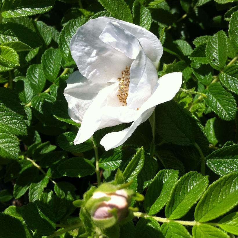 White Japanese rose grows best in a moist, well-drained soil, in full sun. Tolerates salt, urban environments, and radical pruning.