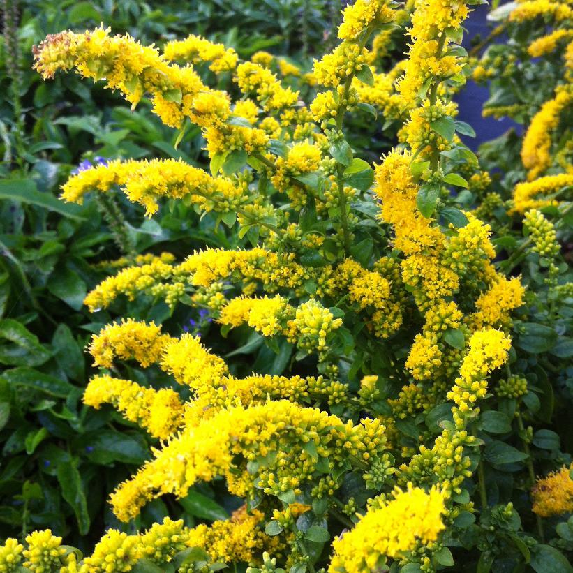 Goldenrod (Solidago) is unfairly blamed for being the source of pollen or allergens which affect those who suffer from hay fever. Pollen from goldenrod is too heavy to travel by air whereas ragweed pollen, which is released close in time to that of solidago, is easily carried and is the true source of this discomfort.