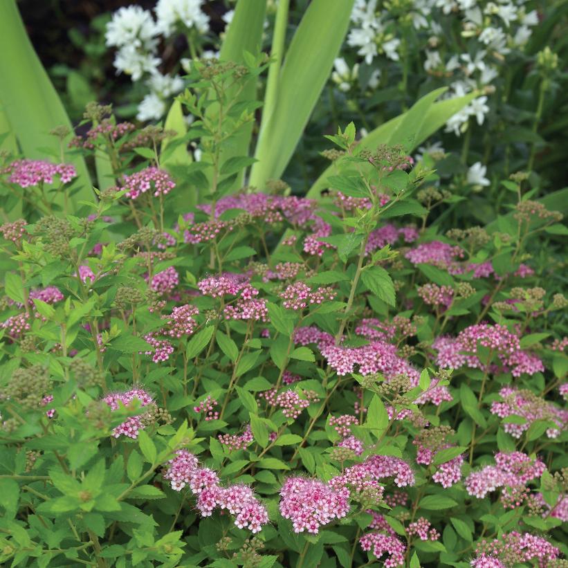 Summer flowering spirea will flower with a good flush in late spring, and sporadically during the summer. To promote a second flush of bloom, remove spent flowers by pinching or light shearing. Pruning for shape should be done in early spring to allow the flower buds to form.